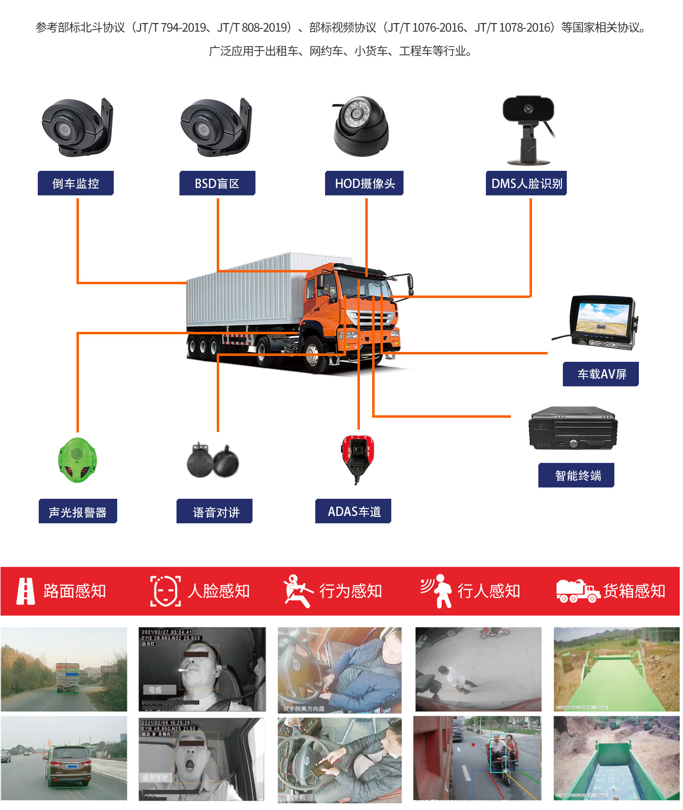 產品概述:GD08R終端集成4G通訊、GNSS定位,ADAS高級駕駛輔助系統、DMS駕駛員監測系統,支持8路音視頻錄像,SD卡和硬盤存儲、行駛數據記錄、監控端發起的雙向通話、實時監控等功能。